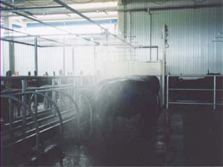 ミストシャワー(超微粒噴霧)による気化熱での牛の体感温度を低減。