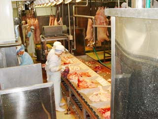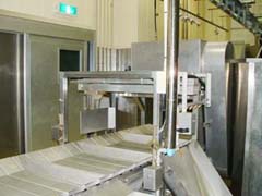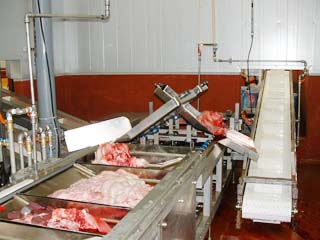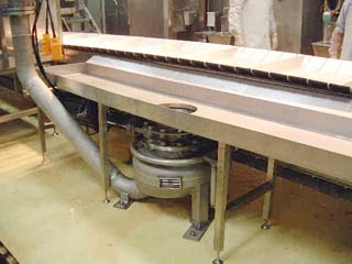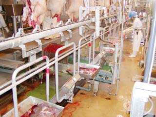 - 各部位毎に定位置(赤物は赤物のパン)に乗せる事により、パンの反転で専用ラインに分配します。廃棄も同様に出来ます。