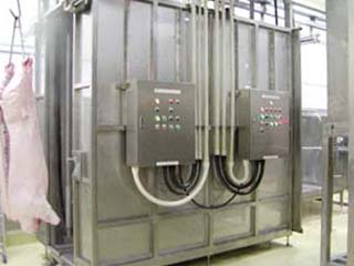 - 開かれた枝肉に洗浄ノズルが上下するので、洗浄水の無駄がありません。